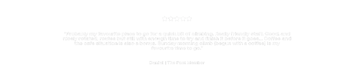 Bouldering is a form of indoor climbing that is performed on an artificial climbing wall without the use of ropes or a harness. This enables climbers to focus on form and technique. The climbing walls at The Font have a maximum height of 4.5 meters meaning they are considered safe to climb without equipment, although safety always remains a priority. We believe bouldering is the most accessible and sociable form of climbing.